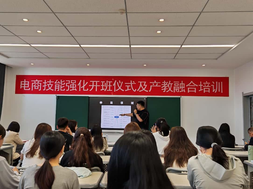 近日,由乌海职业技术学院经济管理系举办的电商技能强化班开班仪式暨产教融合培训新教学楼A5003隆重举行。本次培训深度融合产业与教育,旨在精准赋能,把握数字经济脉搏,其中特邀重量级抖音大咖亲授短视频营销秘籍。