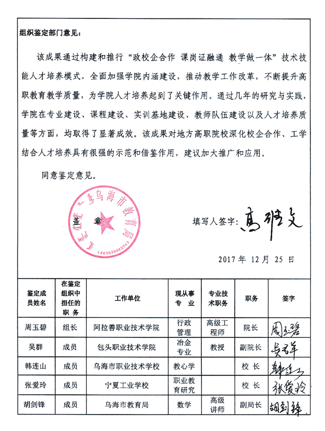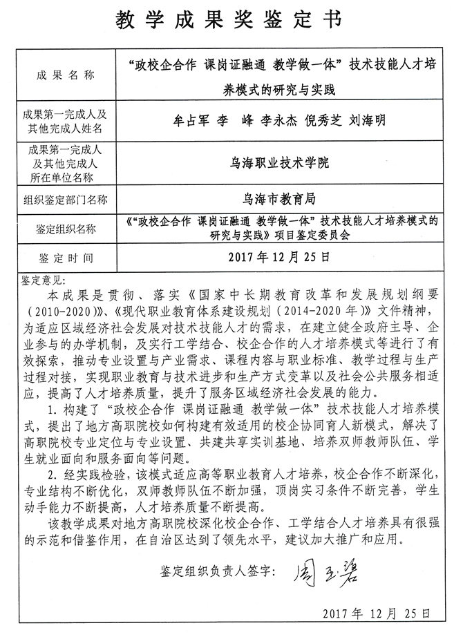 教学成果奖鉴定书