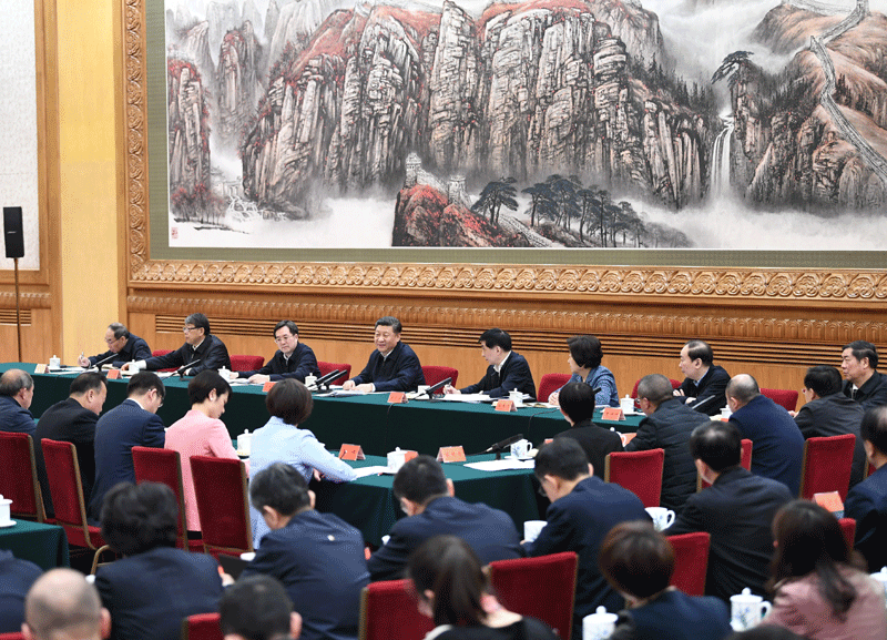 3月18日,中共中央总书记、国家主席、中央军委主席习近平在北京主持召开学校思想政治理论课教师座谈会并发表重要讲话。新华社记者 谢环驰 摄
