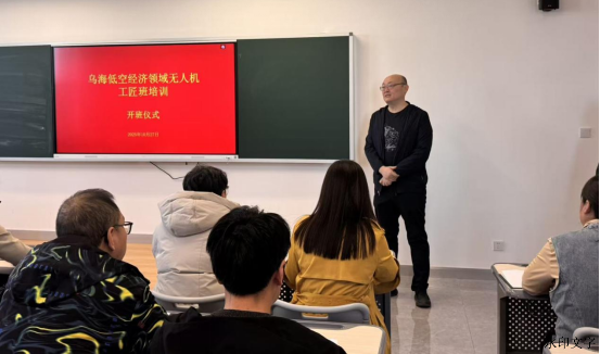 赵普胜部长在致辞中首先代表学院对全体参训学员表示热烈欢迎。他指出,无人机技术作为低空经济的核心支撑要素,已广泛应用于应急救援、电力巡检、地理测绘、农业植保等多个领域,培育具备专业素养的无人机技术工匠,既是推动区域低空经济高质量发展的现实需求,也是学院深化产教融合、服务地方产业升级的重要举措。针对本次培训,赵普胜部长对学员们寄予殷切期望,他强调,参训学员需充分认识本次培训的重要意义,珍惜难得的学习机会,严格遵守培训纪律,合理平衡工作与学习的关系,沉下心来钻研技术、锤炼技能,力争在培训期间学有所获、技有所长,切实提升无人机操作与应用的专业能力,为今后投身乌海低空经济建设奠定坚实基础。