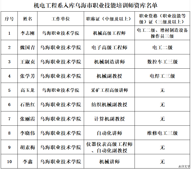 机电工程系10名教师入选乌海市职业技能培训师资库