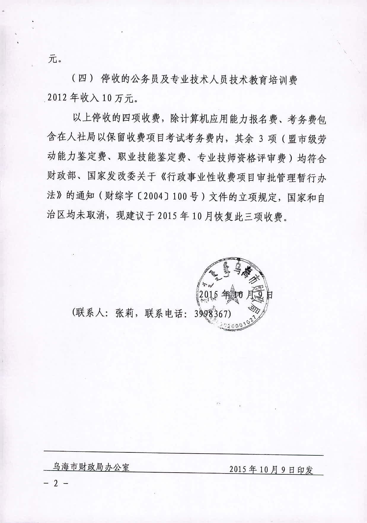 详见后附搜阅《内蒙古自治区发展改革委 财政厅 人力资源和社会保障厅关于规范内蒙古自治区职业技能培训和鉴定收费标准等有关问题的通知》内发改费字【2015】1552号文件。
