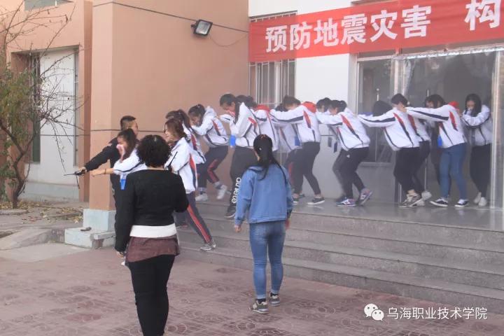 此次演习活动分应急避难演习、紧急疏散演习、受伤人员急救、消防器械使用、灭火演练等环节。现场发出第一次警报后,同学们在三角地带或桌子底抱头蹲下进行模拟避震场景;发出第二次警报后,宿舍楼内放出烟雾弹模拟火灾现场,同学们按照指定路线逃生到指定地点进行集合。而后伤员救护演练开始,救护小组救护受伤人员。在现场,乌海市消防支队官兵也参加了此次演习活动,并且为学生讲解了灭火器的使用方法,介绍普及了相应的消防知识。