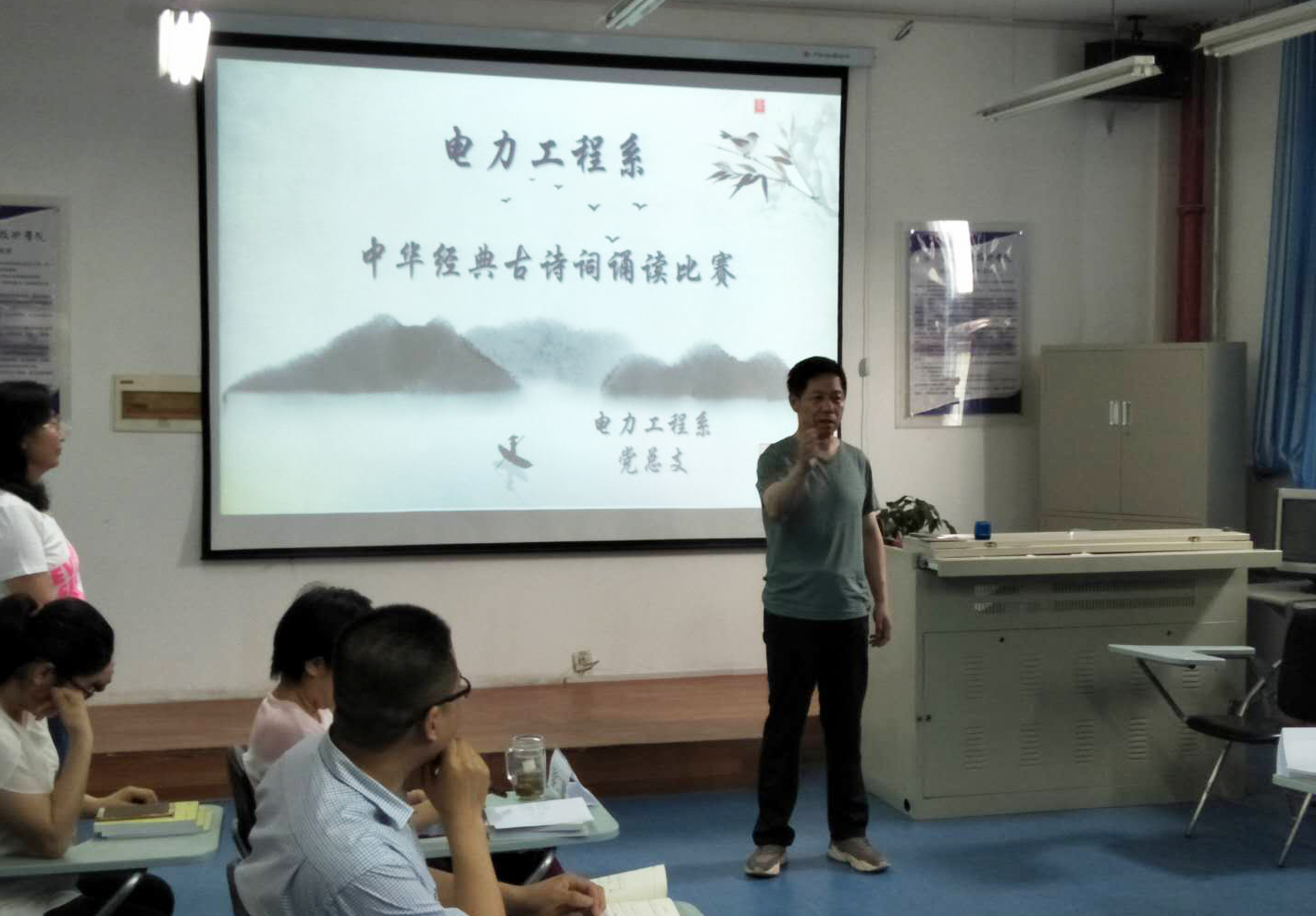为了让教师与诗为友,与经典同行,感受民族文化的源远流长,激发教师对中华优秀文化和祖国语言文字的学习和热爱,增强民族自豪感和文化自信心。近日,电力工程系党总支举办“中华经典诗词诵读”活动。
