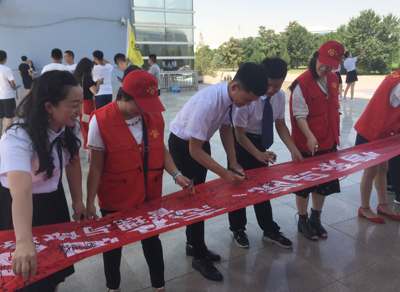 管理与旅游系举办了“放飞青春,报效祖国 感恩母校,奉献爱心展示学子风采,争当文明先锋”为主题的文明离校签字活动。在活动期间,系部的老师们为参加签字仪式的毕业生进行了安全教育,提高了学生的安全防范意识,将安全教育和文明离校的责任逐级落实到每一个学生身上。同时,系部还开展了“育传统美德,扬爱国之心”为主题的毕业生代表交流活动。