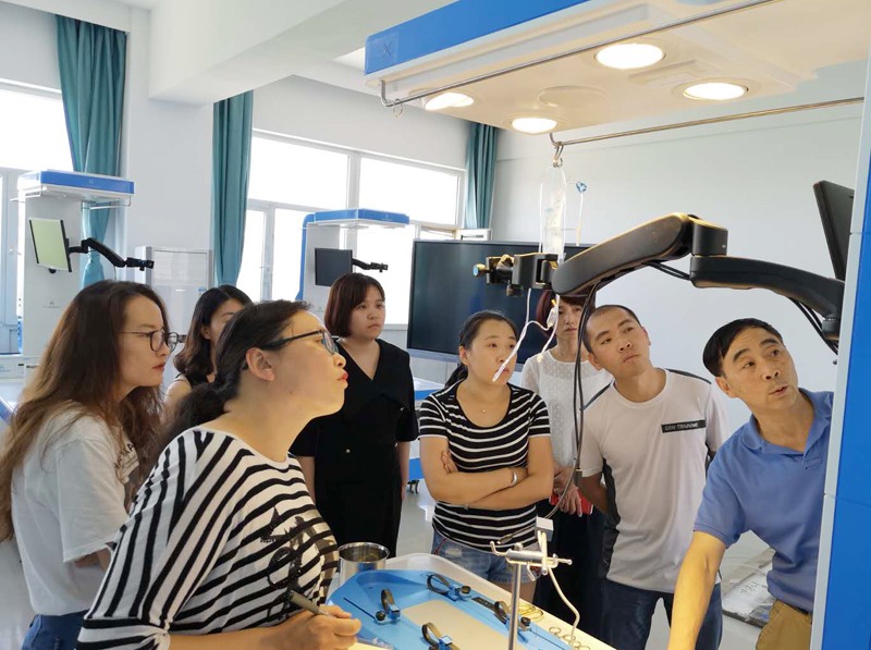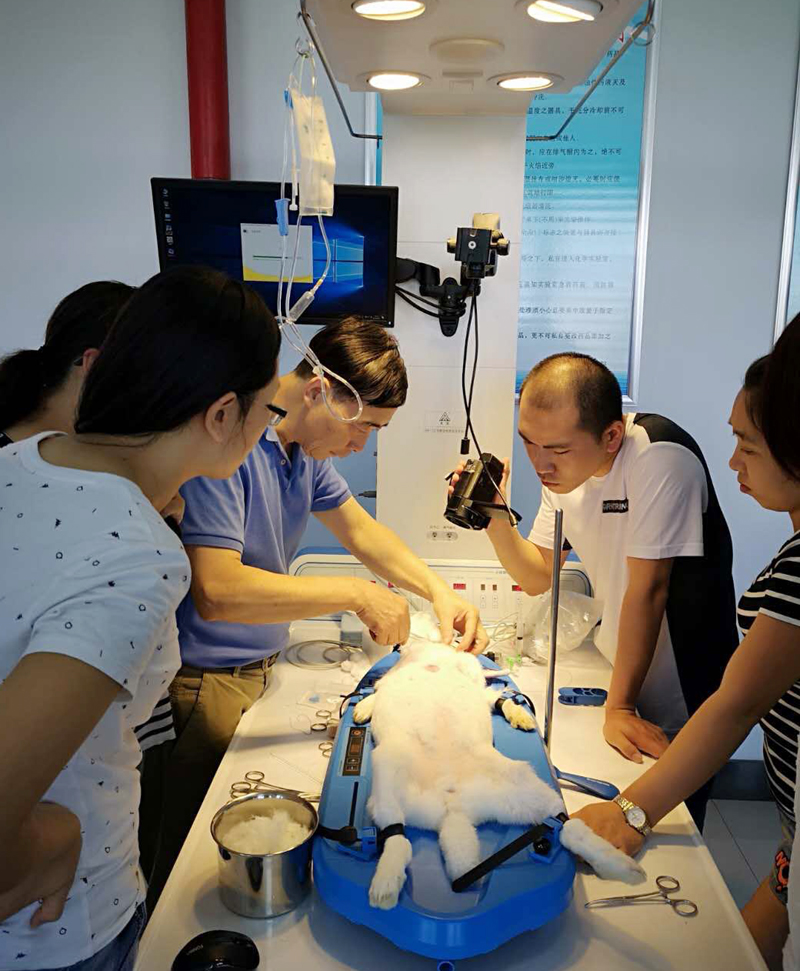 近日,星空电竞app下载苹果版安装护理专业教师在成都华西医科大学的专业教师指导下,进行了为期两天的设备调试和培训。培训中,利用家兔和牛蛙,完成了离体蛙心灌流、蛙心起搏及起源分析;家兔血压的调节、家兔呼吸运动的调节;神经和骨骼肌刺激强度、频率与肌肉收缩反应的关系等实验项目,改变了过去电生理实验信号采集与处理的状态,构建了资源共建共享、虚实结合、教研一体的教学新模式,完成了医学机能虚拟仿真实验教学平台的交互使用,使理论教学和实践教学更好结合。
