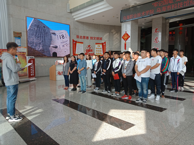 为纪念“九一八”事变87周年,激励我院青年学子勿忘国耻、青春建功,9月18日下午,学院团委联合乌海科技馆举办“牢记国耻 爱我中华”纪念“九一八”主题活动。学院团委副书记贾彦儒,团市委志工部部长、科技馆书记孙安琴,学院团委李鑫老师与我院青年学生代表、科技馆部分工作人员50余人参加活动。