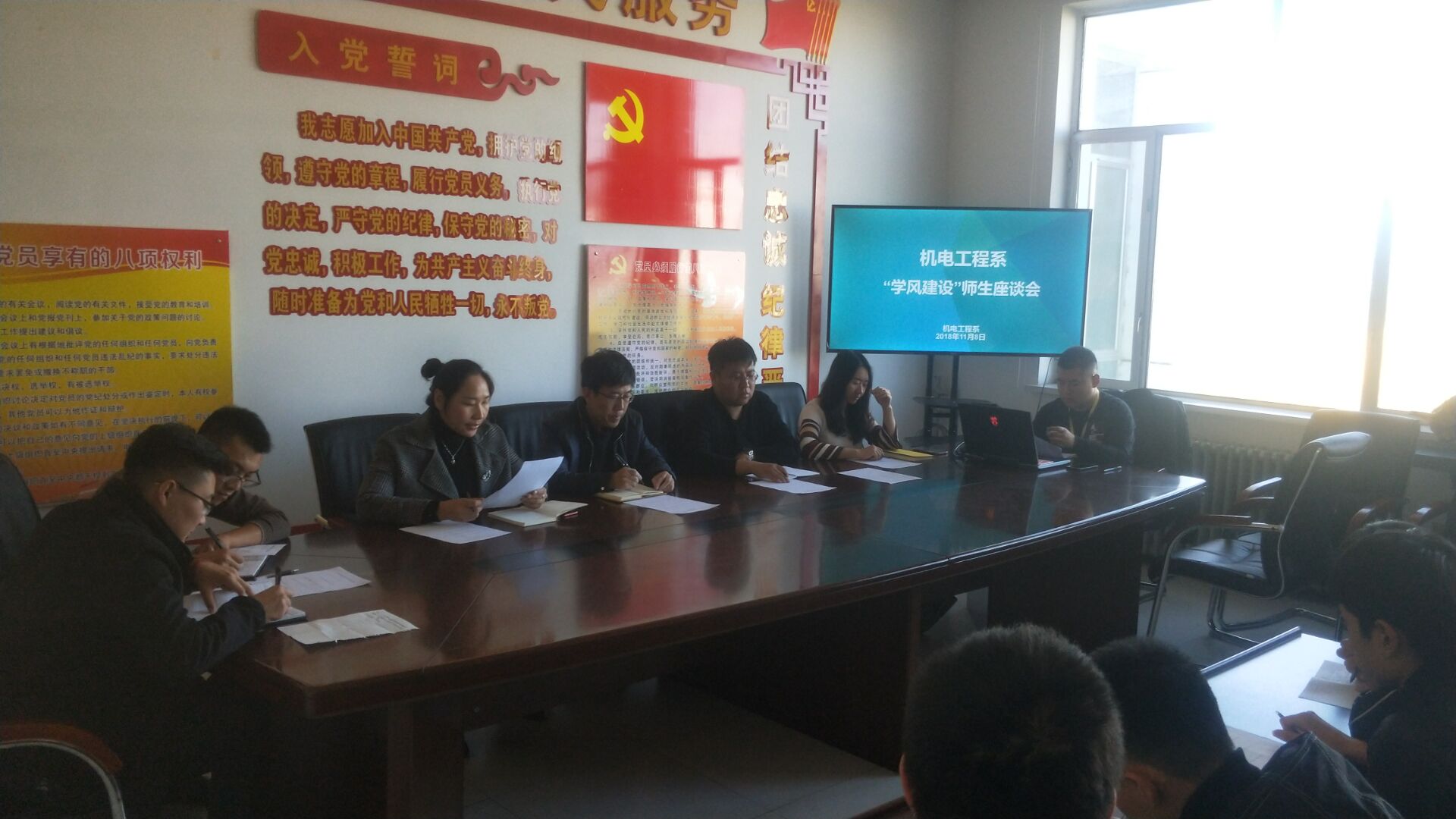 为提升星空彩票app官方版安装下载质量,进一步加强学风建设。11月8日下午, 机电工程系在1B409召开学风建设专题座谈会,系党总支副书记王若东、团总支书记李志刚、辅导员成瑞凤、王超燕及各班班长、团支书、学生代表参与了此次座谈。