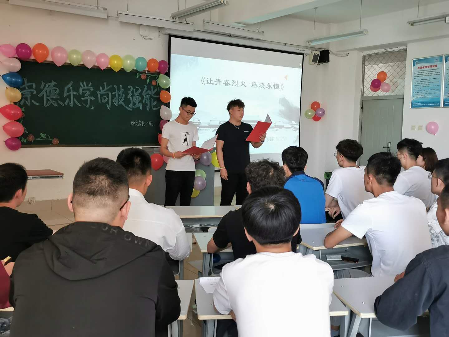 校训是一所大学的灵魂,凝聚着一所大学的教育理念和办学宗旨,在传承大学文化,凝聚大学精神,展示大学形象方面发挥着重要的作用。为了使同学们能够秉承我院校训精神,弘扬校训文化。化学工程系2018级应化1班和2班于5月16日下午组织开展了“崇德乐学,尚技强能”主题班会。