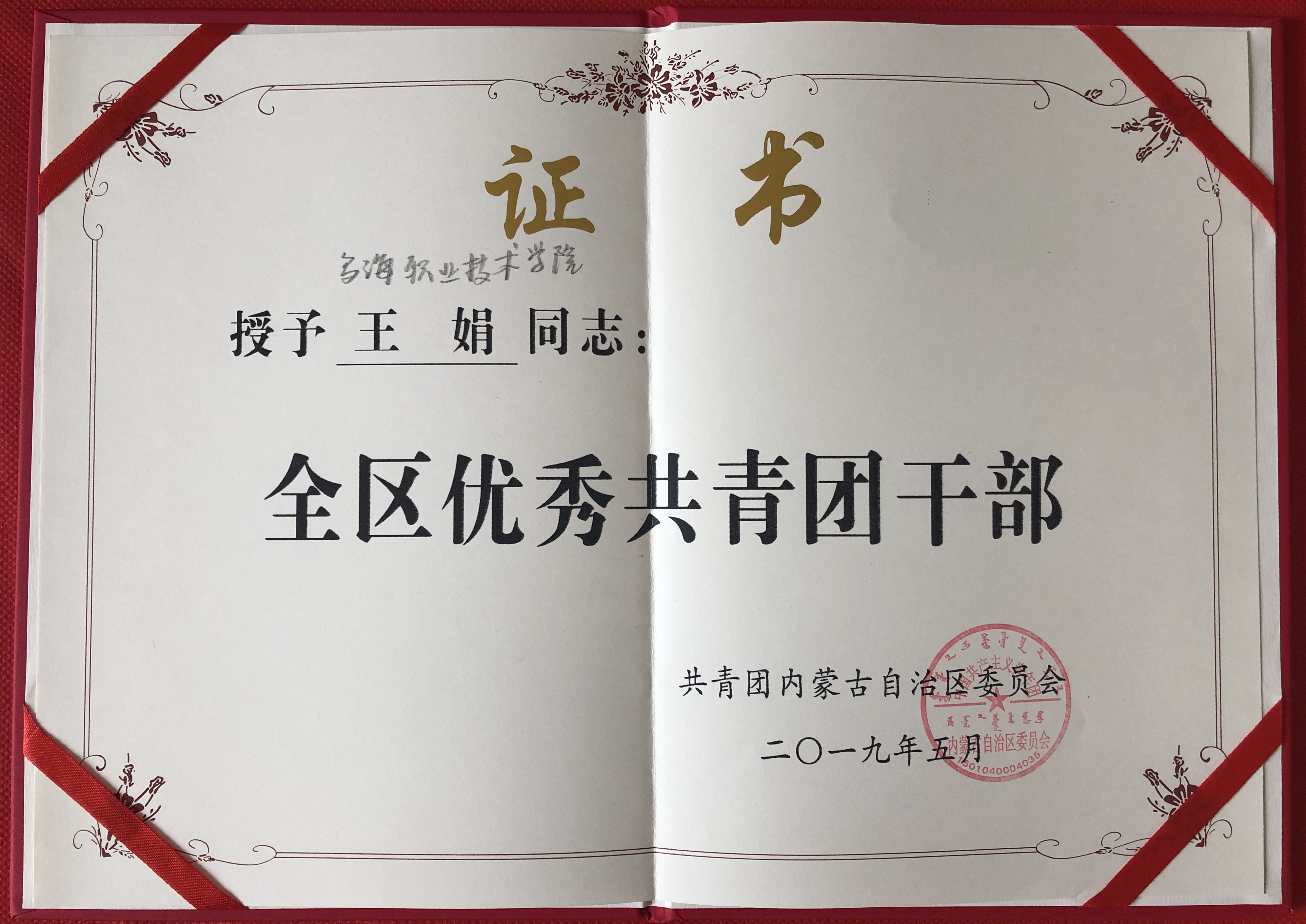 近日,共青团内蒙古自治区委员会公布了《关于表彰2018年度“全区优秀共青团员、团干部”和“全区五四红旗团委、团支部”的决定》,我院团委再次荣获“全区五四红旗团委”荣誉称号;管理与旅游系2017级会计(一)班团支部荣获“全区五四红旗团支部”荣誉称号;团委书记王娟获得“全区优秀共青团干部”荣誉称号;机电工程系学生刘凯凯获得“全区优秀共青团员”荣誉称号。