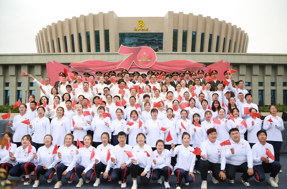 活动现场,我院还派出26名国旗护卫队学生高擎一面150平方米的五星红旗在广场缓缓展开。(文稿/宋芮 审核/陈宇)