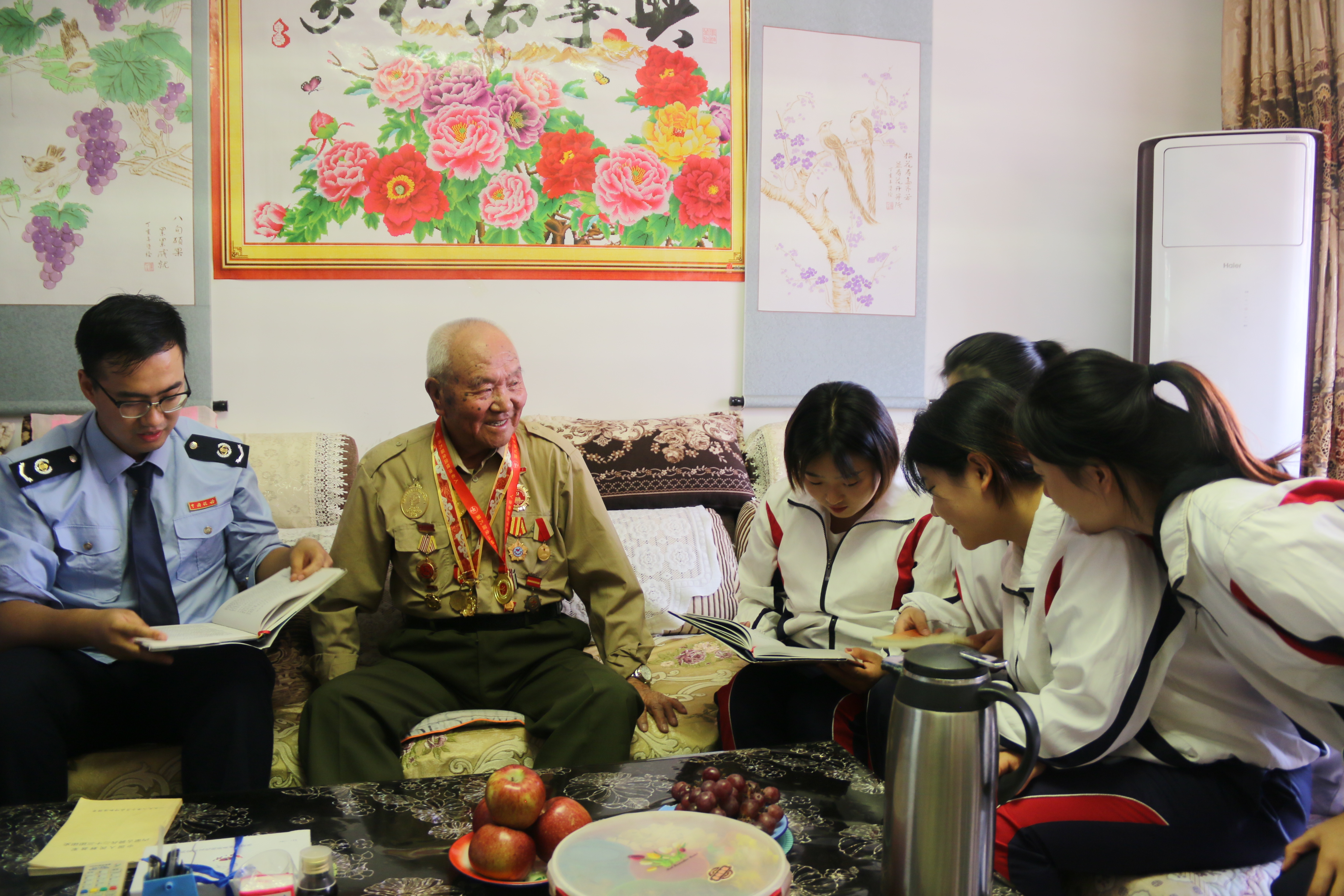 最后,同学们还去看望了92岁高龄的原乌海市人民武装部部长道尔基老人。道尔基老人向同学们讲述了他从军的革命道路,加入中国共产党的心路历程,介绍了他胸前十几枚勋章的来历。在老人的讲述中,同学们仿佛看到了那个战火纷飞的年代,同时在老人身上看到了一个共产党员的坚定与执着、光荣与信仰。最后,道尔基老人还语重心长地对同学们说:“青年人要珍惜当下,认真工作,祖国未来的发展需要你们!”