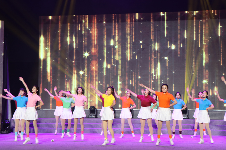 本次演出共14个节目,有176名师生登台,是管理与旅游系建系以来规模最大的文艺活动,也是首次师生同台演出,更是一场别开生面的思政课。歌伴舞《中国范儿》拉开了演出序幕,古筝双人弹奏《女儿情》尽显唯美;流行歌曲、励志歌曲赢得观众阵阵喝彩;街舞、古典舞、现代舞让观众一饱眼福,其中《追梦人》表达了大学生青春洋溢的精神风貌;《游牧人》体现了蒙古族儿女能歌善舞,全国各民族团结有爱的精神;原创作品《三句半》表达对祖国、乌海及学院的美好赞美;《礼赞中国》由老师们激情昂扬的诗朗诵配合同学们演的抗战主题情景剧,将整场晚会推向高潮。T台秀《Toms》,同学们利用废材料展现环保元素,用时尚动感的音乐结合各色废物品所制作成的衣服,将绿色环保的精神完美的展示出来。大合唱《word团》《共筑中国梦》将整场演出画上了完美句号。