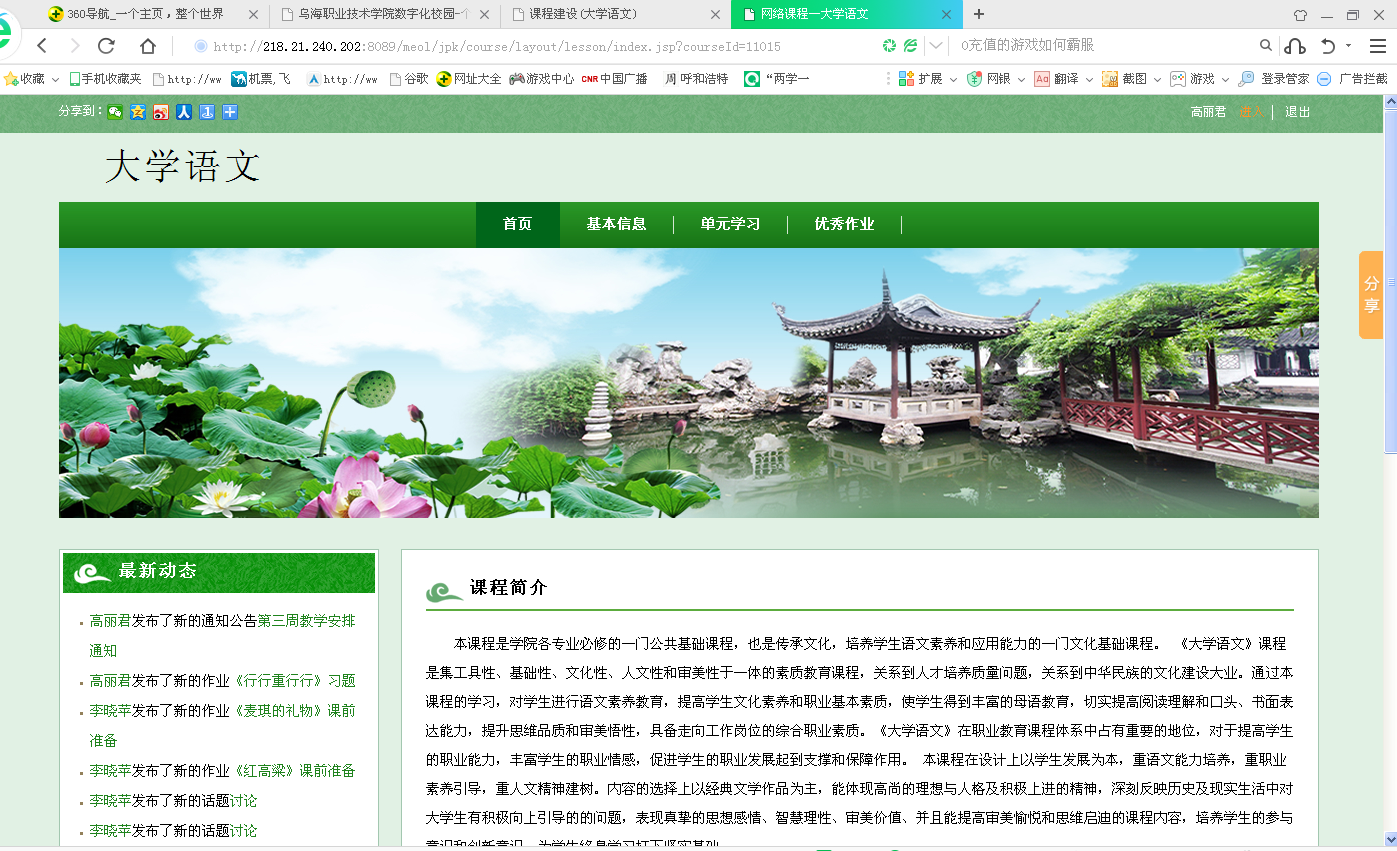 “停课不停教,停课不停学。”基础教学部《大学语文》课程教师组深入贯彻落实《星空电竞app下载苹果版安装关于做好疫情期间教学组织与管理的工作方案》,自3月2日开展线上授课以来,现已完成12学时的教学任务,期间多次通过网络会议平台研究教学细节和教学方法,及时总结教学经验和不足,统一授课时间和授课内容,形成了“理论学习+直播授课+平台任务+线上答疑”的混合教学模式,将“教师线上授课、学生自主学习、师生多项互动”有机结合,有力吸引了学生,受到学生的极大欢迎。按照教学计划,《大学语文》课程教师组制订了“吟诵之美、品读之味、梨园之韵、写作之真”四个教学模块,近期的网络线上课堂面向机电工程系、建筑工程系、学前教育系2019级26个班860多名学生,讲授《行行重行行》《离骚》《蒹葭》《归园田居》《宣州谢脁楼饯别校书叔云》《登高》《钱塘湖春行》等诗歌。
