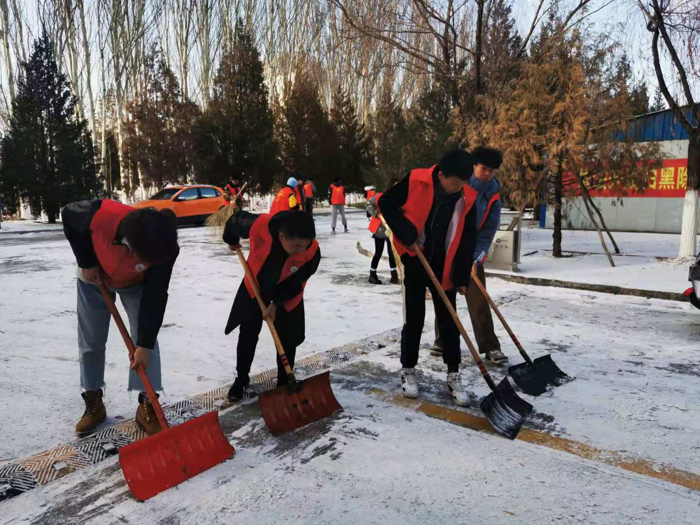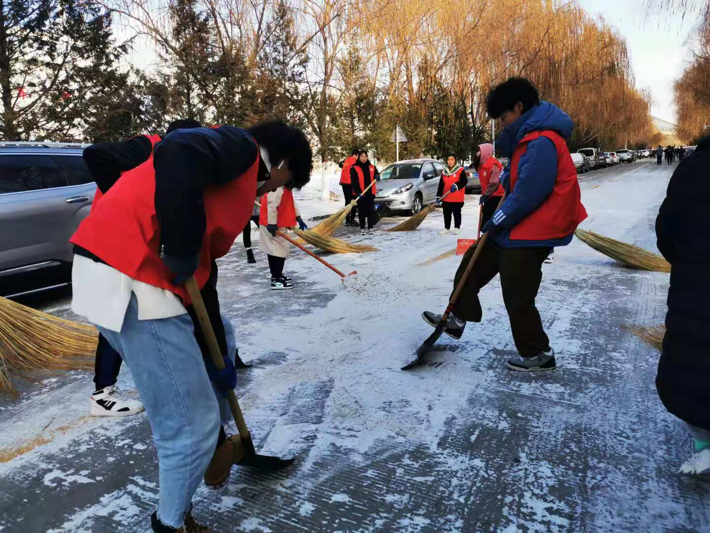 当日下午,管理与旅游系2020级旅游2班和2019级会计1班29名同学穿上红马甲,带上白手套,冒着严寒,携带铁锹、雪铲、扫帚等工具来到实训楼前,清理校园道路积雪。同学们分工合作、配合默契,铲的铲、扫的扫,干劲十足。冬天固然寒冷,但同学们的热情不减。经过2个小时的劳动,道路的积雪被同学们扫得干干净净。
