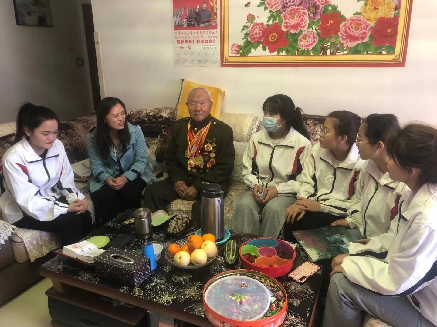 4月17日,管理与旅游系结合党史学习教育开展了一次特别的主题团日活动,组织学生党员、入党积极分子、团员代表一同去看望道尔基老人,听他讲革命故事。
