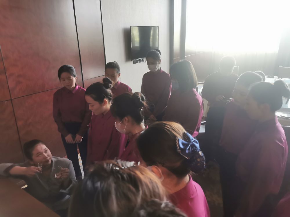 在第一周实训中,企业对学生们进行了岗前培训,包括酒店情况、服务礼仪、职业素养及突发事情处理等,之后按照餐饮、客房、前厅等不同岗位需求,对学生进行分配,并安排专人对学生进行专业指导。