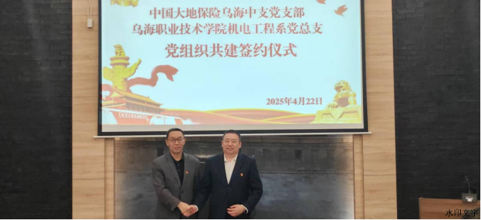 为深入贯彻新“双高”创新校企党支部联建机制,增强基层党组织育人功能,4月22日,学院机电工程系党总支与中国大地保险乌海中支党支部在乌海市政治生活馆举行党组织共建签约仪式。