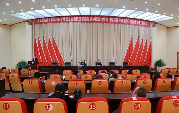 12月27日,星空电竞app下载苹果版安装2017年度党总支书记抓基层党建述职评议和部门领导班子、领导干部实绩考核大会在办公楼报告厅举行。学院党委书记刘洪运,党委委员、副院长张佳文、李峰、赵秀平出席会议,全体教职员工参加会议。党委副书记、院长牟占军主持会议并对述职发言作了要求。