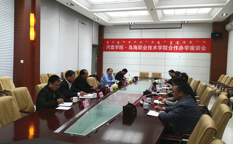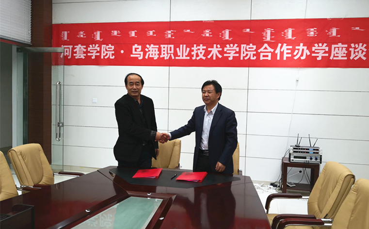 在签约前,双方进行了会谈。牟占军介绍了我院的办学条件、专业建设、人才培养和实训基地建设等基本情况,并谈了与河套学院合作试办本科职业教育的想法和思路。张高明介绍了河套学院的基本状况和发展目标等情况,并就学科建设、师资队伍建设、实训条件建设等方面的思路、经验与牟占军交换了意见。同时希望两校在师资队伍共享、校企合作等方面进一步深入合作。双方还就合作专业制定培养方案、双师队伍建设、校企合作等合作办学的具体事宜交换了意见。