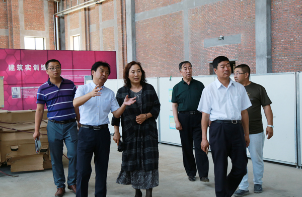 在公共实训中心,刘素红询问和查看了建筑实训馆、服务楼、工业展览馆等各功能场馆的建设情况。牟占军对实训中心的占地面积、建筑面积、绿化硬化、建设投入、功能分区等情况进行了详细介绍。