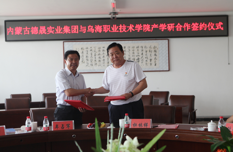 6月22日下午,学院党委副书记、院长牟占军赴内蒙古德晟实业集团洽谈产学研合作事宜。内蒙古德晟实业集团党委书记杜林祥出席签约仪式。牟占军与杜林祥分别代表校企双方签署了《产学研合作协议书》。