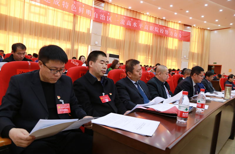 薛文代表学院党委作了题为《站在新起点 开启新征程 为全面建成特色鲜明高水平高职院校努力奋斗》的工作报告。