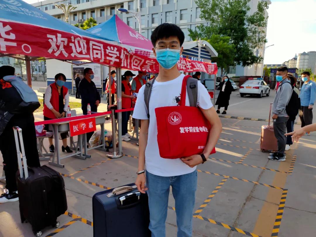 化学工程系2016级应化一班的谭博文一大早便起来踏上归程,虽然一路上一直扫码,经历各种检查,但也正因为这样严格的程序让他感到安心放心。“特别是一出火车站就看到了我们学院接站的老师,乘坐大巴车到校门口,这一切都让我觉得十分亲切和温暖。回到宿舍发现,老师提前替我们打扫了宿舍,还进行了消杀,看到学院细致的安排,心里十分感动。”