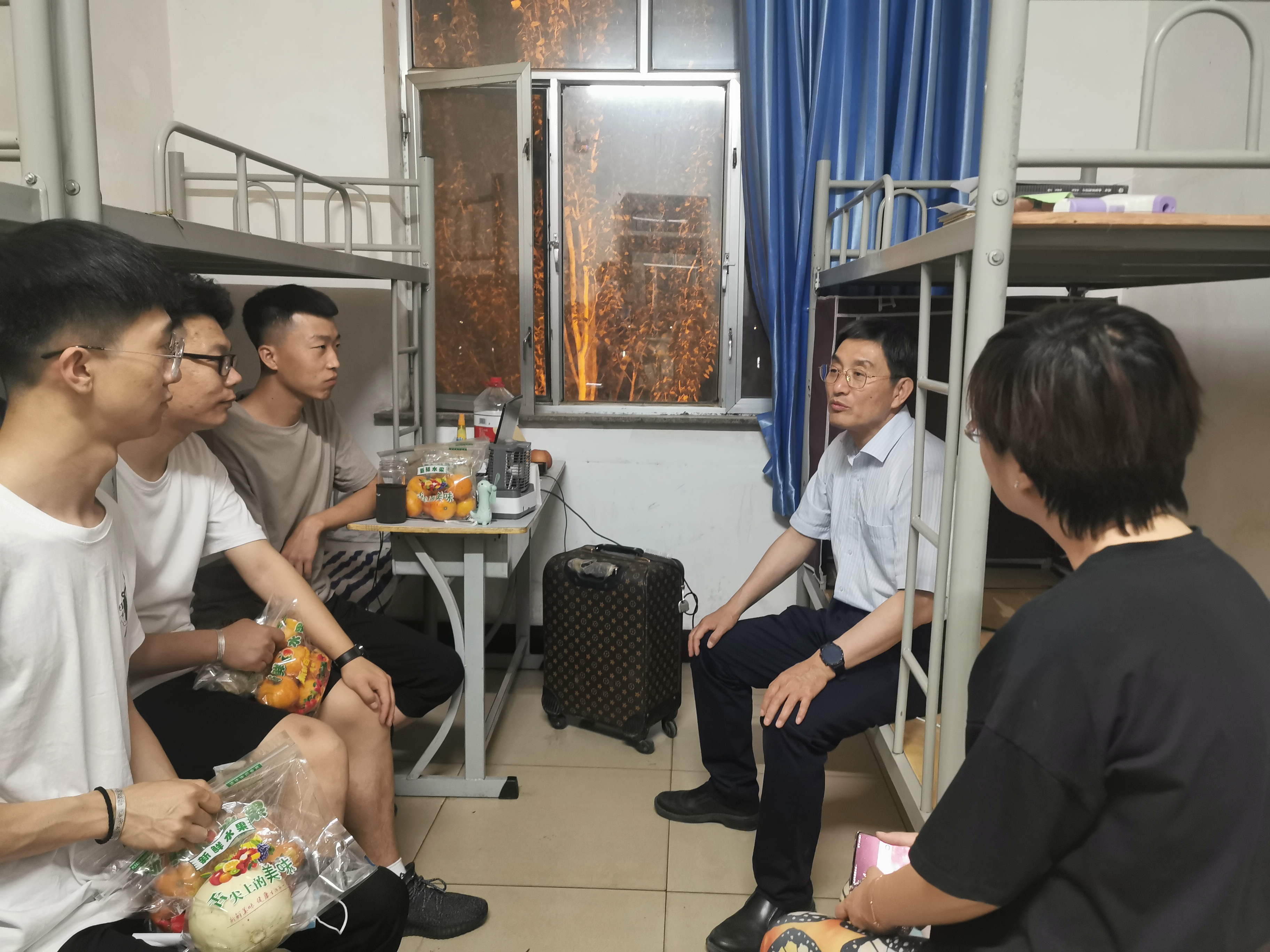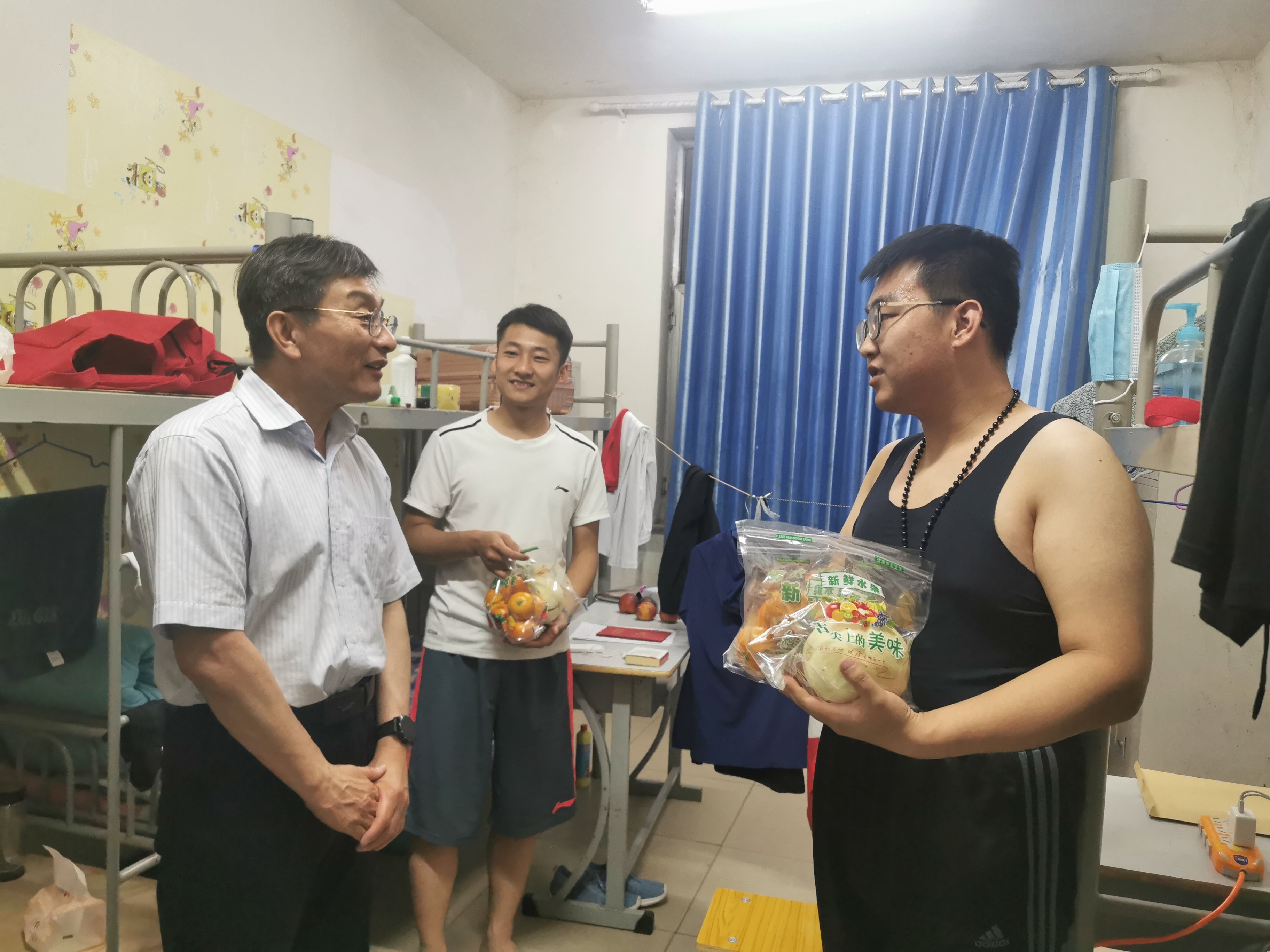 6月10日晚,院党委书记薛文深入学生公寓看望返校复课学生,并对学生公寓管理工作进行检查。