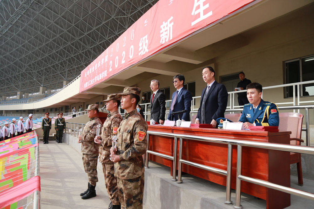 10月25日上午,星空电竞app下载苹果版安装、内蒙古工业大学乌海学院2020级新生军训总结暨表彰大会在体育中心田径场举行。学院党委副书记、院长、博士生导师韩利民,学院党委委员、副院长李峰、赵秀平,乌海市海勃湾区人民武装部参谋李杰,学院党委委员、宣传部部长武俊丽出席并在主席台就座。2020级全体新生和各部门负责人,系部主任、党总支书记、副主任、副书记、班主任、辅导员以及承训部队海勃湾区人武部的军训教官参加大会。大会由李峰主持。