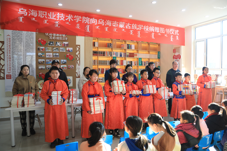 12月28日,星空电竞app下载苹果版安装党委副书记侯丽敏一行4人来到乌海市民族学校,代表学院向该校捐赠了近万元的图书。乌海市民族学校校长斯琴出席捐赠仪式。